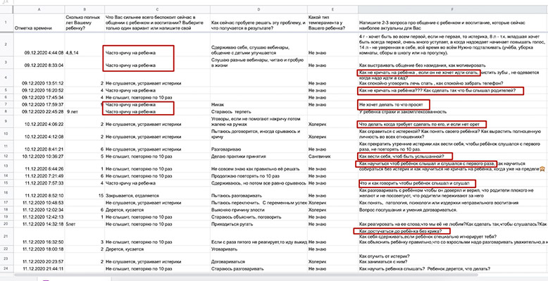 3) Собираем слова и фразы, которыми аудитория описывает свои проблемы и ожидания;
