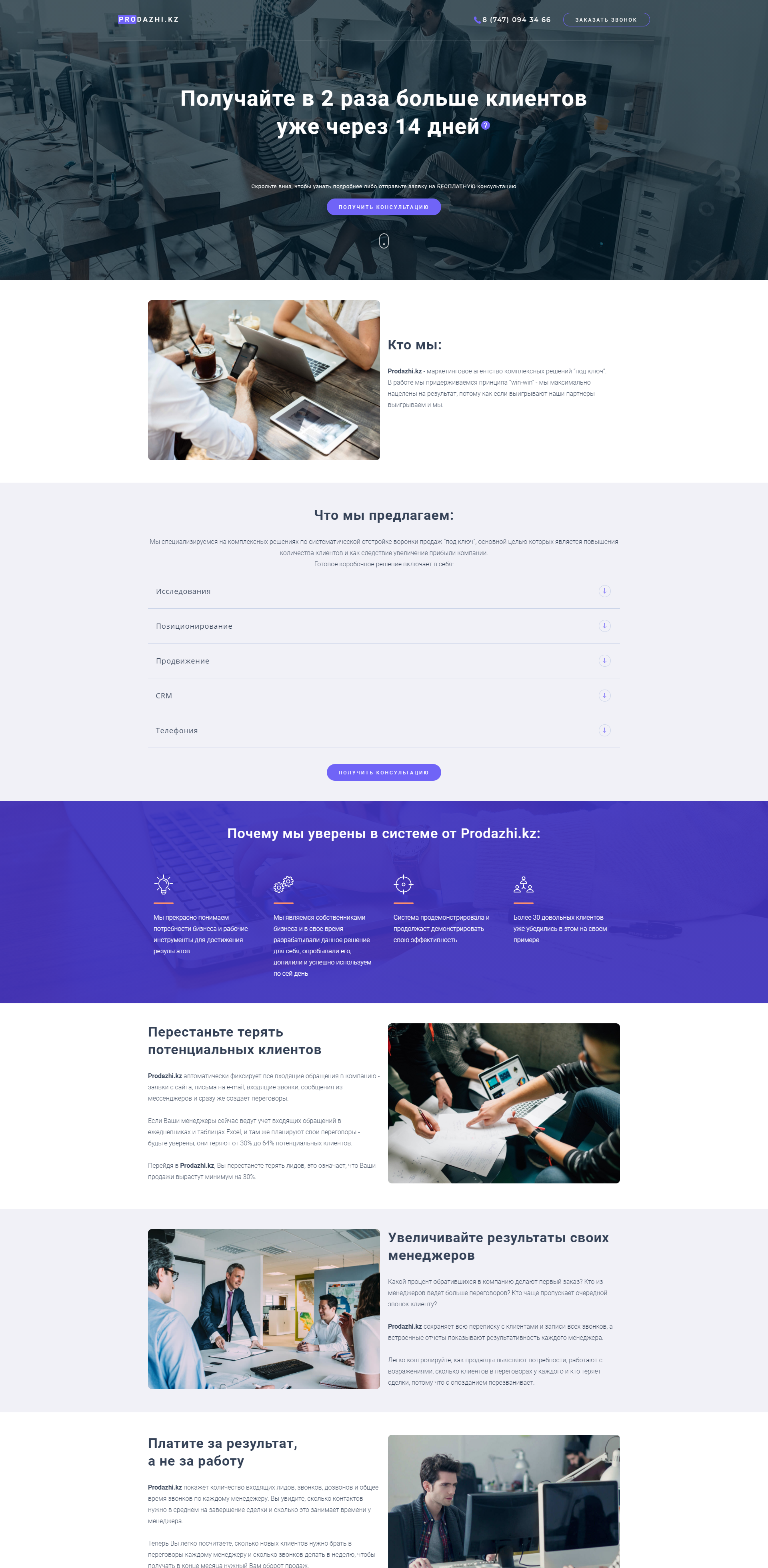 В нужных местах ставим призывы к действию. Используем опыт более 100 проектов. Знаем, как разные аудитории реагируют на разные офферы. Предлагаем готовые решения из разных ниш.